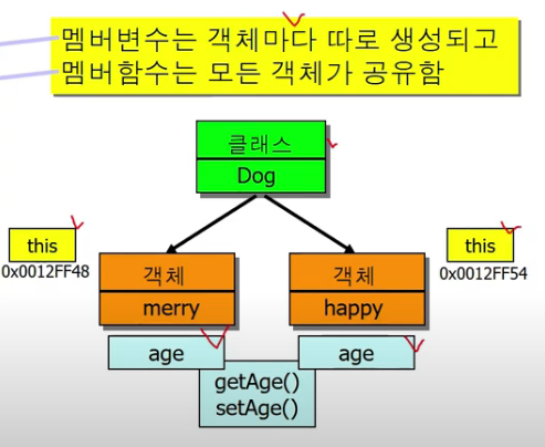 멤버 변수는 객체마다 별도로 다 새로 생긴다.